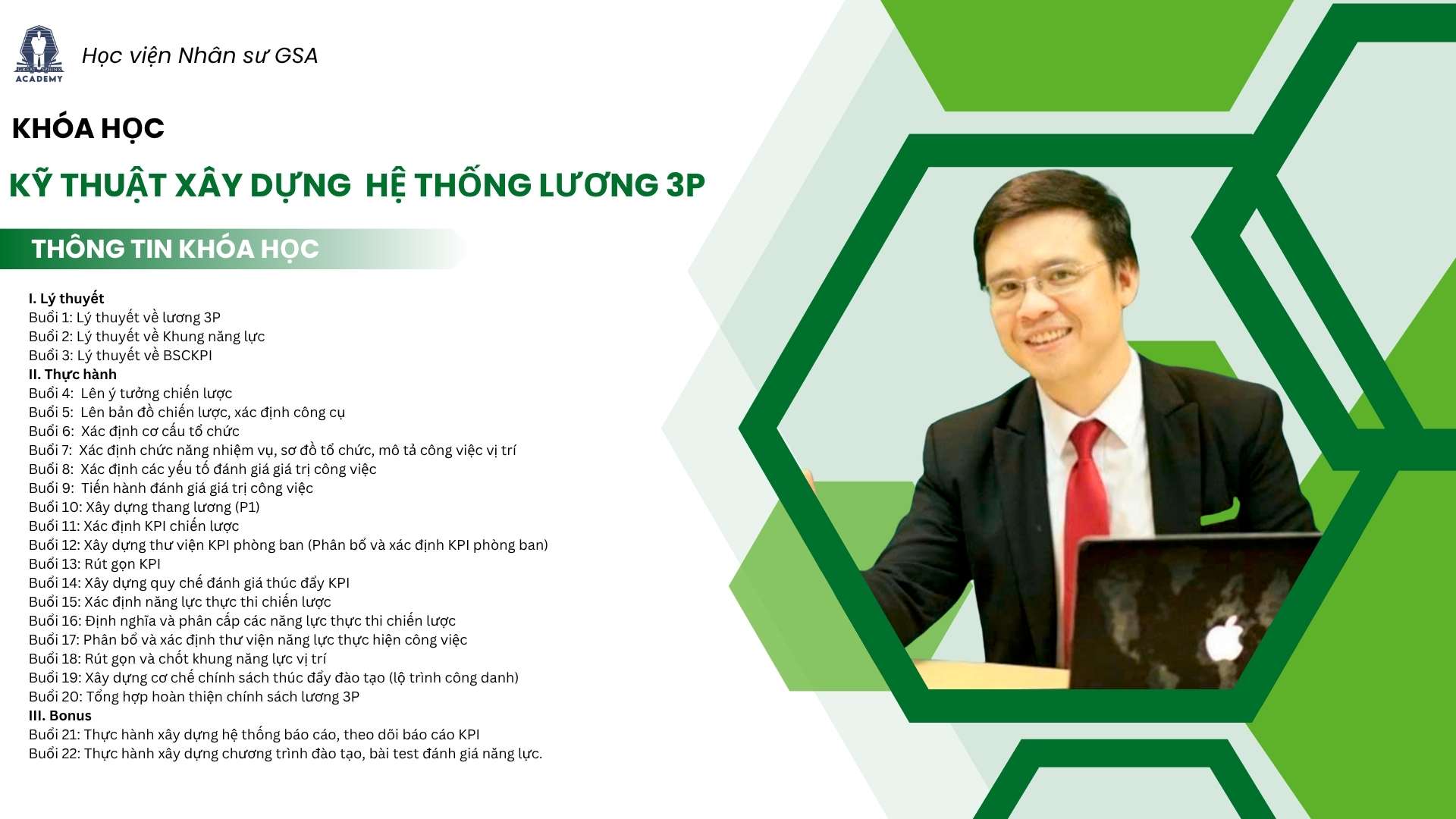 Lý thuyết gồm 3 buổi: giới thiệu về Lương 3P, Khung năng lực, và BSC/KPI.