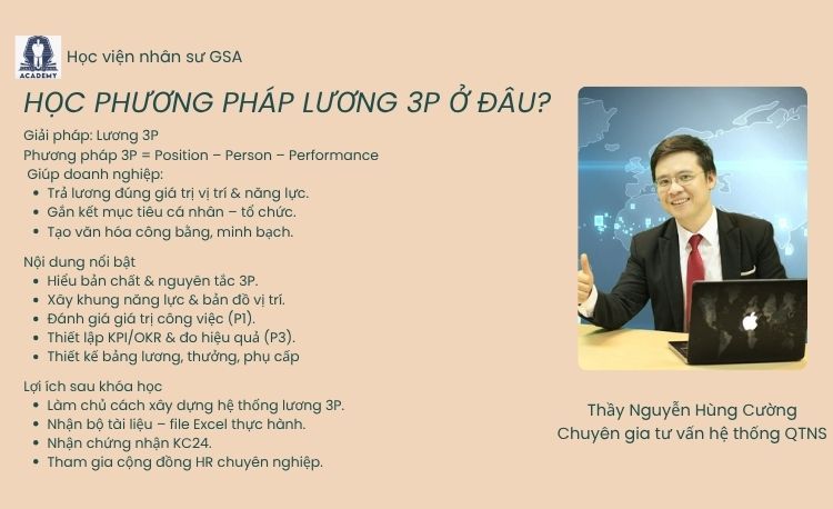 Trong bối cảnh doanh nghiệp ngày càng chú trọng vào việc xây dựng hệ thống lương thưởng công bằng và minh bạch, phương pháp trả lương theo 3P (Pay for Position, Person, Performance) đã trở thành xu hướng tất yếu. Tuy nhiên, để hiểu đúng – làm chuẩn – và áp dụng hiệu quả, nhiều chủ doanh nghiệp và người làm nhân sự vẫn đang loay hoay tìm nơi học uy tín. Câu trả lời được nhiều học viên tin chọn hiện nay chính là khóa học “Phương pháp lương 3P” tại daotaonhansu.net/luong3p do Thầy Nguyễn Hùng Cường – chuyên gia nhân sự hàng đầu Việt Nam – trực tiếp giảng dạy.