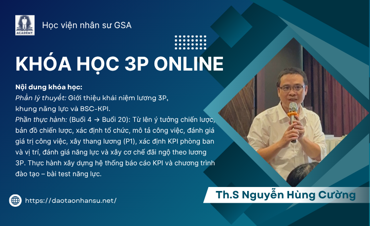 Bạn đang tìm cách nâng cao năng lực quản trị nhân sự và xây dựng hệ thống lương – thưởng hiệu quả cho doanh nghiệp? Khóa học “Hệ thống lương 3P – Kỹ thuật triển khai và xây dựng” của thầy Nguyễn Hùng Cường chính là lựa chọn đáng cân nhắc. Khóa học được thiết kế chuyên sâu, rõ ràng và thực tiễn, dành cho cả người làm HR và chủ doanh nghiệp gặp khó khăn khi triển khai hệ thống lương 3P.