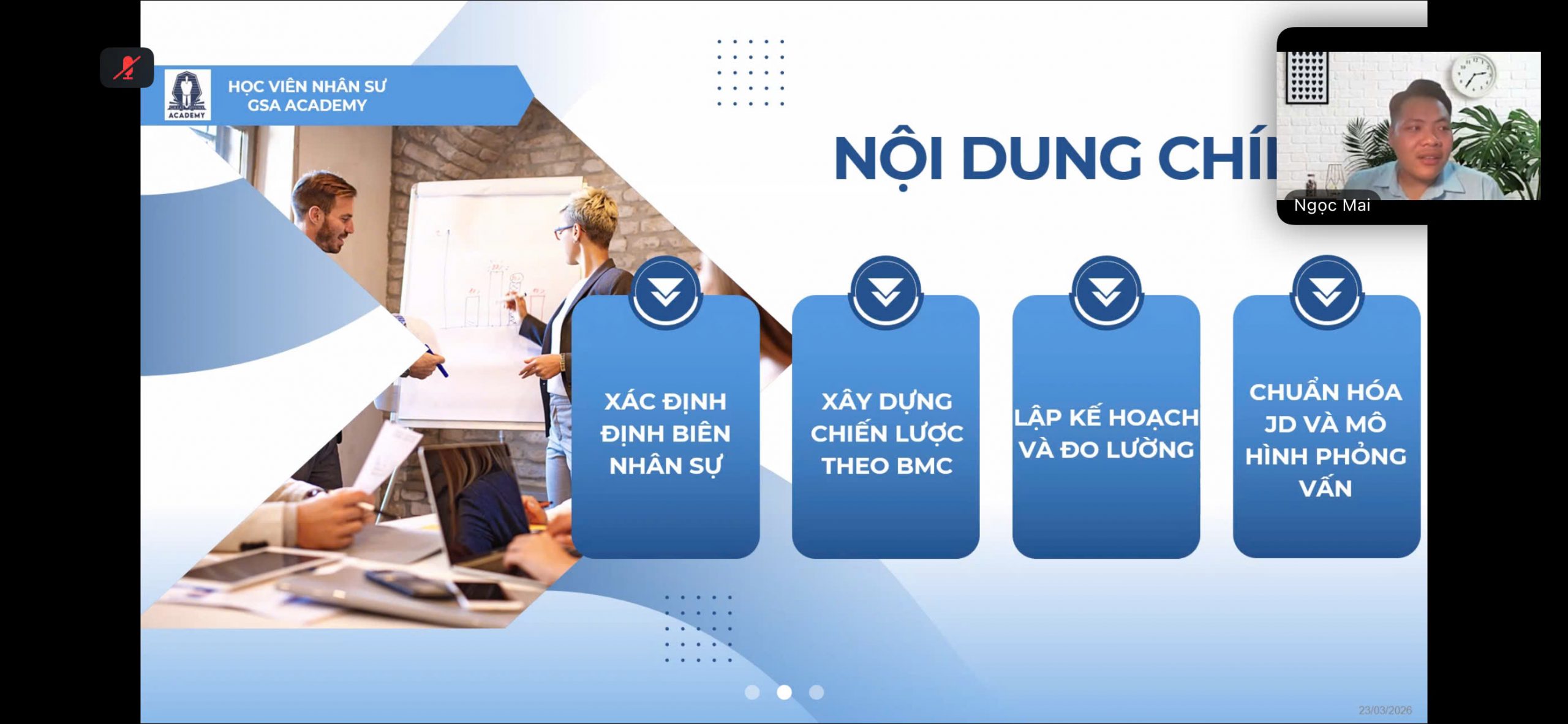 Huấn luyện viên – người đã mang đến những kiến thức thực chiến về headhunt, từ cách tiếp cận ứng viên, xây dựng nguồn talent pool đến chiến lược tuyển dụng hiệu quả trong thị trường cạnh tranh. Không chỉ dừng lại ở lý thuyết, những chia sẻ thực tế đã giúp học viên hiểu đúng – làm chuẩn – và tự tin áp dụng ngay vào công việc.